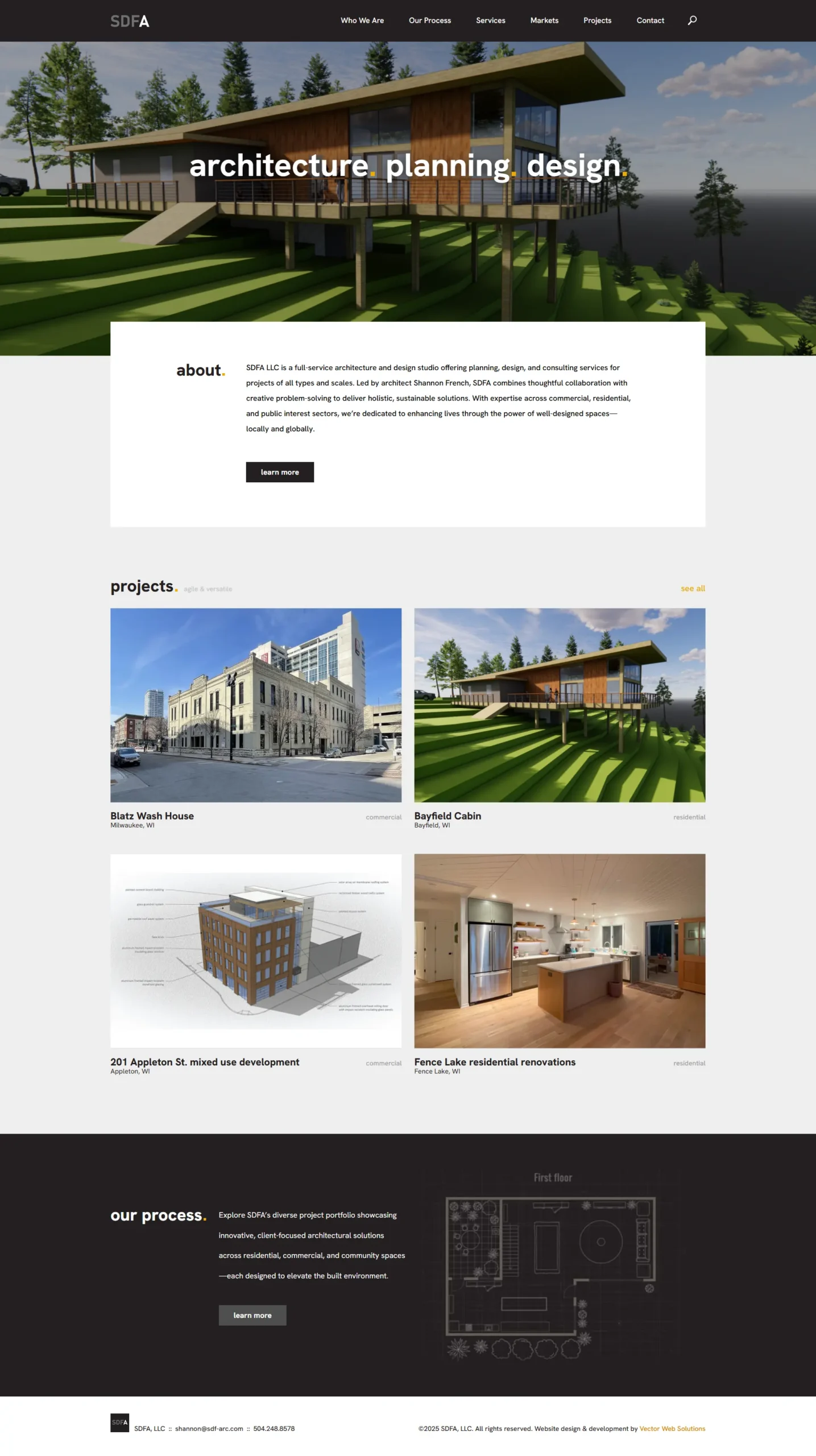 A minimalist, mobile-friendly website for SDFA – a fox valley based architect. The site features an interactive project portfolio and optimized content.